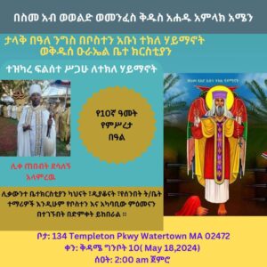 ታላቅ በዓለ ንግስ በቦስተን አቡነ ተክለ ሃይማኖት ወቅዱሰ ዑራኤል ቤተ ክርስቲያን።